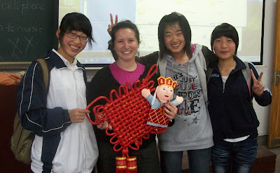 While a few of my students didn't care about English and preferred to sleep in the back or play on their cell phones, the majority of my students were attentive, sweet, respectful, punctual, and enthusiastic. It was a pleasure getting to know some of them and I'm kicking myself now for not doing social things with them earlier in the year. I thought I had to be really professional and keep all these boundaries, but I realized too late that it's much more beneficial (in these circumstances) to be friends with one's students. It's a very different relationship than at a college in the States, and I wish I had taken advantage of it earlier. You live, you learn! The last day of class was really bittersweet for me - I rarely cry, but I teared up a bit in some of my classes. Many of the students bought me gifts, like calligraphy sets or teacups or Mao paperweights. One students even sang me a song: "You Are So Beautiful (To Me)." I was very touched.
